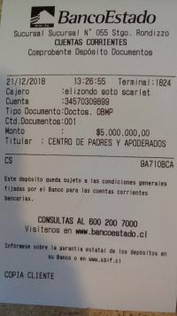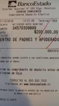 La denuncia por apropiación ilícita fue presentada a comienzos de este año 2018 y hoy finalizó con la entrega de fondos que ascienden a $5.200.000. La cifra fue entregada en un vale vista y dinero en efectivo. Este dinero ya se encuentra en el lugar correcto, la cuenta oficial del centro de padres.
